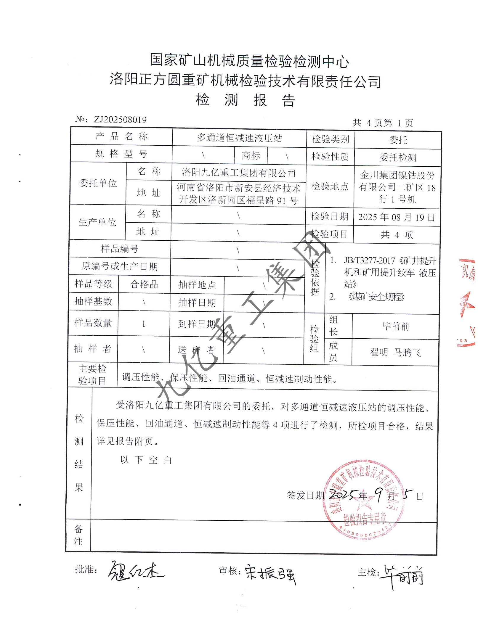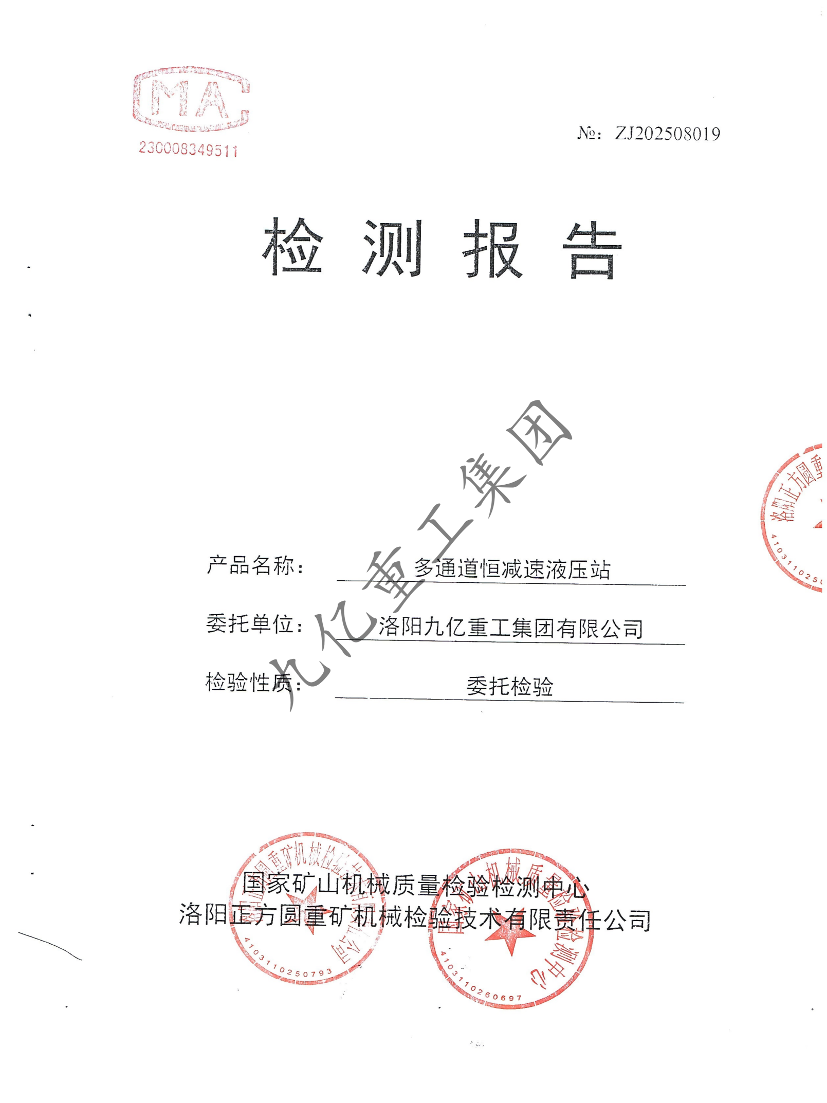 多通道恒減速液壓站檢驗(yàn)報(bào)告